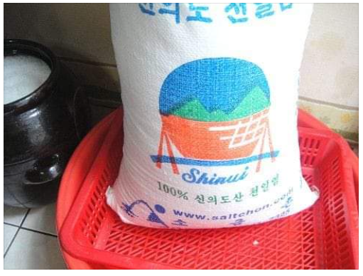 금방 제조한 소금은 이 간수 속 (염화·ᆞ황산) 마그네슘 때문에 쓴맛이 난다. 간수 안 뺀 소금으로 음식 만들면 당연히 음식이 쓰다. 그래서 3년 이상 간수를 빼낸다. 이 간수 뺀 소금이라야 배추도 제대로 절여지고 음식도 단맛을 낸다.
