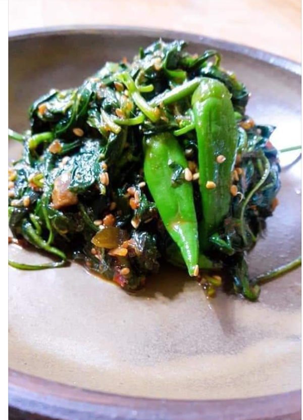 위 사진은 꿩대신 닭으로, 고추잎 살짝 데쳐 나물 무침이다.