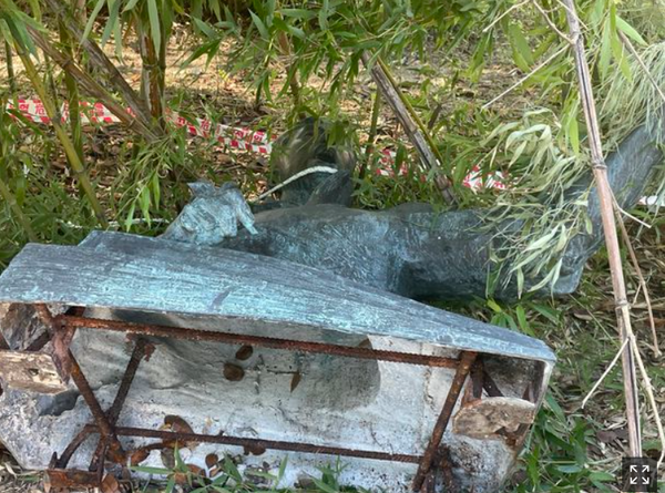 중국 청년단체에서 기증받아 광주에 세워진 정율성 동상이 한 보수단체 회원에 의해 쓰러뜨려졌다.