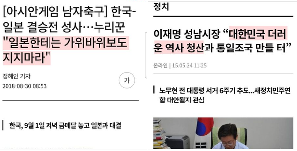 한일전을 앞두면 예의 '가위 바위 보도 질 수 없다'는 말을 쏟아낸다. 홍대 앞에서 거리응원까지 있었다고 한다. 아시안게임을 중계하는 KBS MBC SBS TV조선 등 국내 4개 방송사는 똑같이 한일 축구전을 방영했다. 그 시간에 진행되는 다른 경기들을 보고 싶어하는 시청자들은 전혀 안중에도 없다. 방송사를 아예 통폐합하든지, 언제까지 이런 행태를 보일지 모르겠다.
