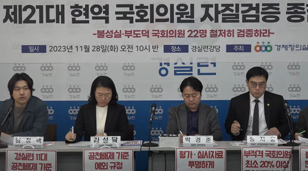 경실련은 7개 항목 중 3개 이상에 해당하는 국회의원 22명에 대해 '자질 의심' 의견을 냈다.