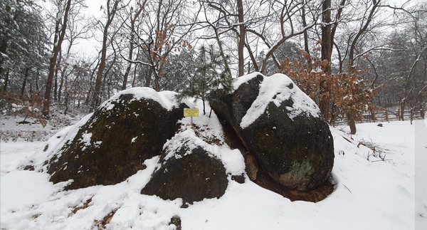 산길을 오를 때마다 궁금하던 참이었다. 우리 동네 등산로는 이 잘생긴 바위를 휘돌아가며 남한산성 남문으로 이어지는데 언젠가부터 바위 위 어린 소나무와 팻말이 눈에 띄었다.