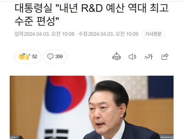 대통령실이 내년 R&D예산을 역대 최고 수준으로 편성하겠다고 발표했다.