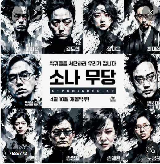 포스터에 '소나무당'이라고 쓰지 않고, 가운데 띄워 쓰기를 하여 '소나 무당'이라고 썼을까? 사실 하나같이 '무당' 얼굴이다. 입에 칼 하나 물면 더 제격이다. '악귀'를 처단하러 나왔다고 하니...