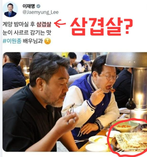 그런데 이 인간이 능청스럽게 거짓말을 하네. '계양 밤마실 후 삼겹살...눈이 사르르 감기는 맛'이라? 삼겹살을 석쇠에 굽나. 형편상 한우를 못 사먹는 사람들도 접시에 담겨있는 고기 색깔을 보면 소고기인지 돼지고기인지는 구분한다. '입만 열면 거짓말'의 진수를 또 보여주네. 한우 먹어놓고 왜 삽겹살 내미나. 올리지를 말던가.