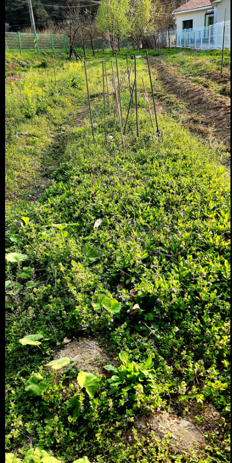 한 보름 남짓 집을 비웠던 사이 텃밭에도 봄풀이 무성하다. 한 뺌 남김없이 온통 풀로 뒤덮었다. 씨 뿌리지도, 가꾸지도 않았는데 어찌 저리 무성할까.