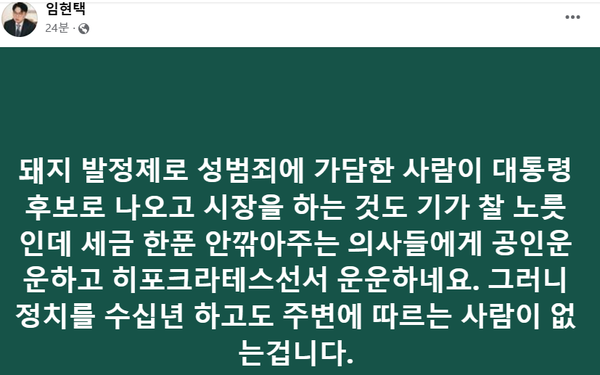 이에 임현택 대한의협회장은 페이스북에 아래의 글을 포스팅했다.