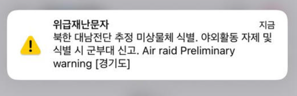 #대남전단, #공습, #위급재난문자, #공습예비경보