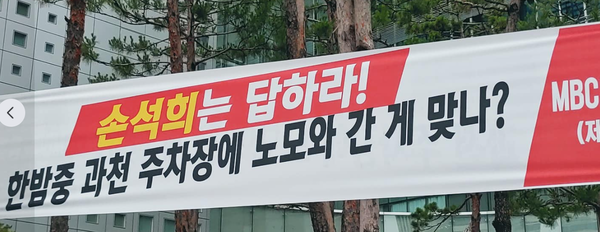 MBC노조가 손석희 전 JTBC 사장의 시사프로그램 진행자 기용에 반대하는 현수막을 회사 앞에 내걸었다. 손석희 씨의 MBC 진입을 막기 위한 강력한 투쟁의 시작이다.