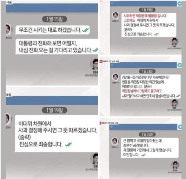윤석열 : 야, 너희들도 좀 정신 제대로 차려! 한동훈이 와이프 문자를 계속 씹고 있어. 내가 형이면 형수 아니냐. 본인이 그렇게 힘들 때 나보다 형수가 더 마음 써주고 돌봐준 거 모르나. 이런 새끼를 어떻게 믿냐.