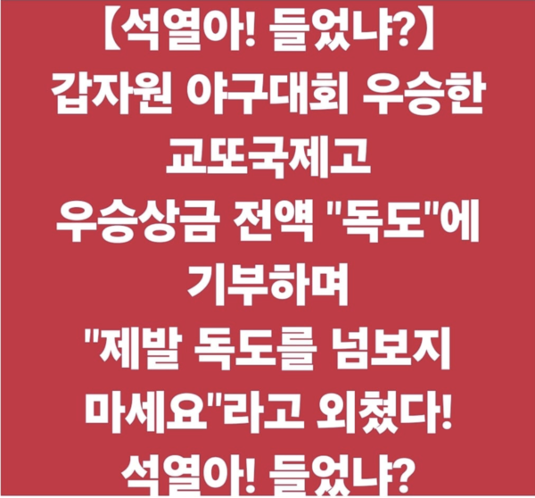 교토국제고가 우승상금 전액을 독도에 기부하면서 뭐라뭐라 했다고?