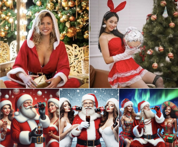 코카콜라는 빨간 바탕에 흰색으로 흘려 쓴 자사의 로고를 연상시킬 수 있도록 산타클로스의 빨간 옷과 흰 소매를 연출했고, 흰 수염을 통해 코카콜라의 거품을 상징화했다.