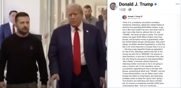 이에 트럼프가 러시아와 일종의 공동전선을 펴며 젤렌스키를 박살내고 있는 것이다. 아래는 트럼프의 화끈한(?) SNS글 전문이다. (편집자)