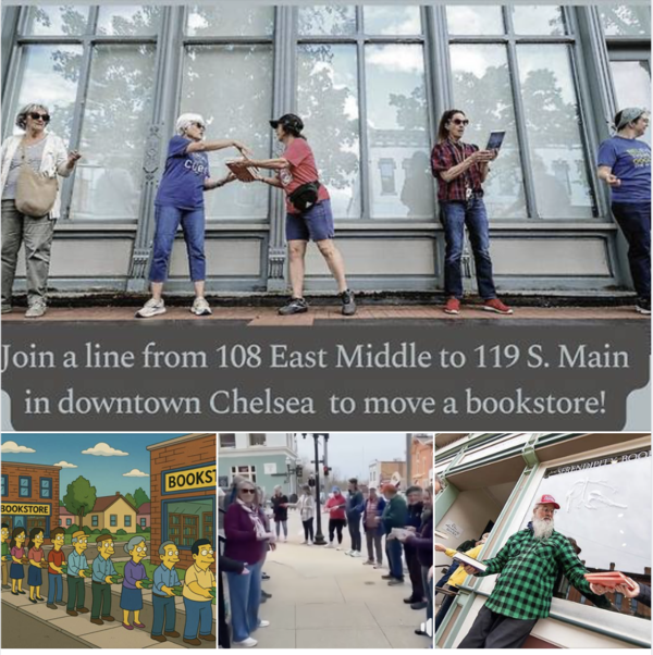 서점 이사를 위한 프로젝트 이름처럼 '어깨를 맞대고 책을 나르는 사람들'의 book brigade(책 전달 행렬).