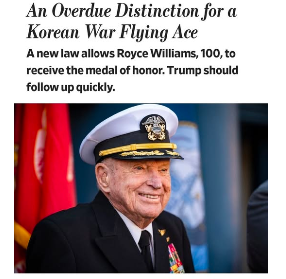 월스트리트저널(WSJ)의 2025년 12월 22일 자 칼럼 "An Overdue Distinction for a Korean War Flying Ace(한국전쟁 비행 에이스를 위한 뒤늦은 서훈)"