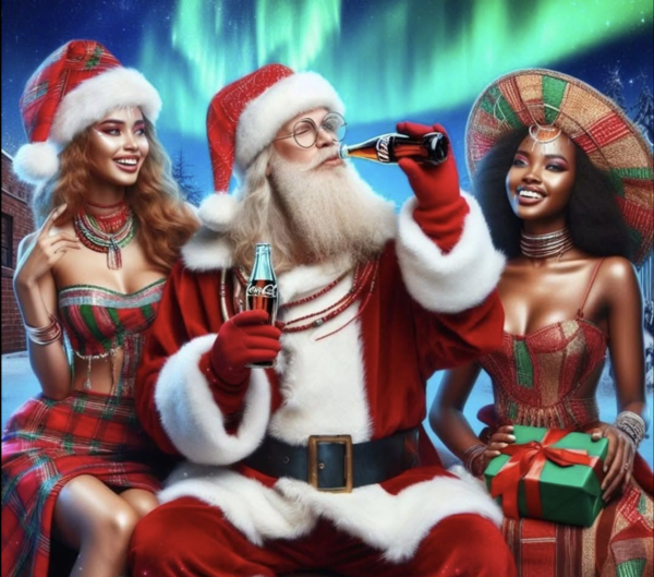코카콜라는 빨간 바탕에 흰색으로 흘려 쓴 자사의 로고를 연상시킬 수 있도록 산타클로스의 빨간 옷과 흰 소매를 연출했고, 흰 수염을 통해 코카콜라의 거품을 상징화했다.