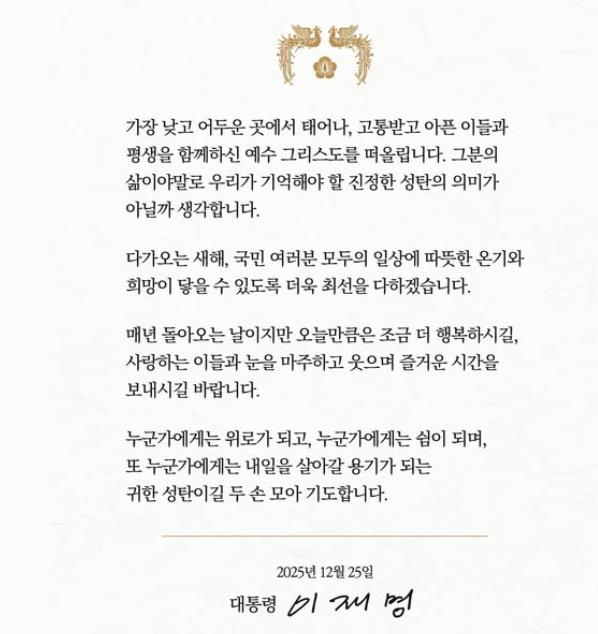 *아래는 이재명 대통령의 성탄메시지다.