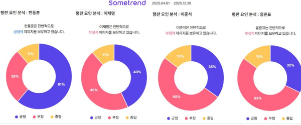 1년을 마무리하며 지난 대선 국면인 4월부터 연말까지 9개월간 주요 정치인에 대한 유튜브 내 평판 반응을 살펴봤습니다(빅데이터 분석 플랫폼 썸트렌드 활용).