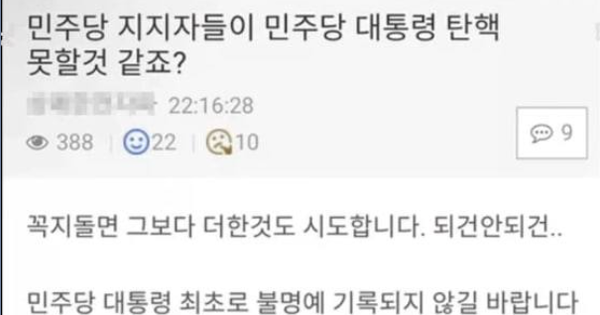 민주당 지지자들이 민주당 대통령 탄핵 못할 것 같죠?