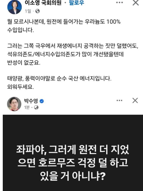 이번 에너지 논쟁이 딱 그렇다. 위 사진에서 보듯이 두 여야의원의 그 당당하고 오만한 텍스트 안에는, 정작 2026년 글로벌 에너지 패권 전쟁의 가장 서늘한 팩트가 완벽하게 탈색되어 있다.