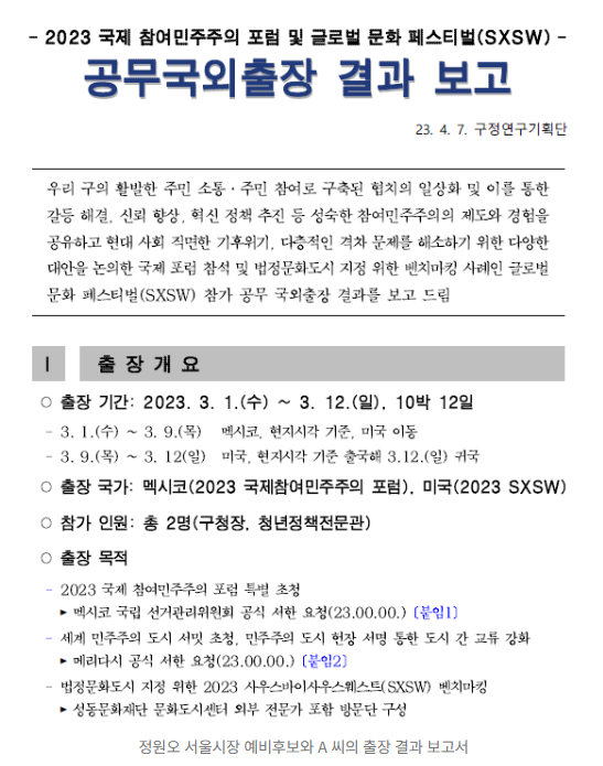 #정원오불륜, #정원오칸쿤, #공무출장 심사의결서, #출장 결과 보고서